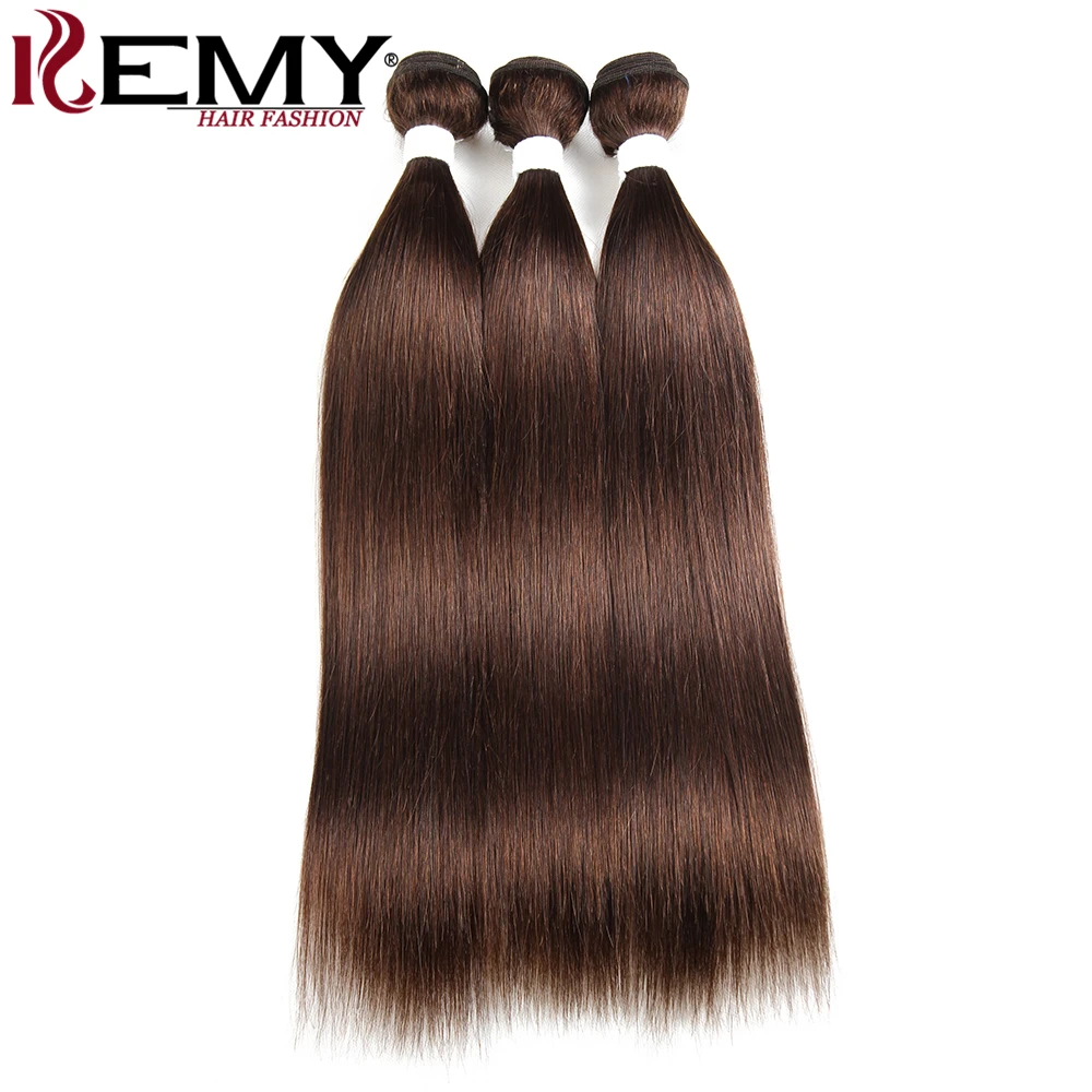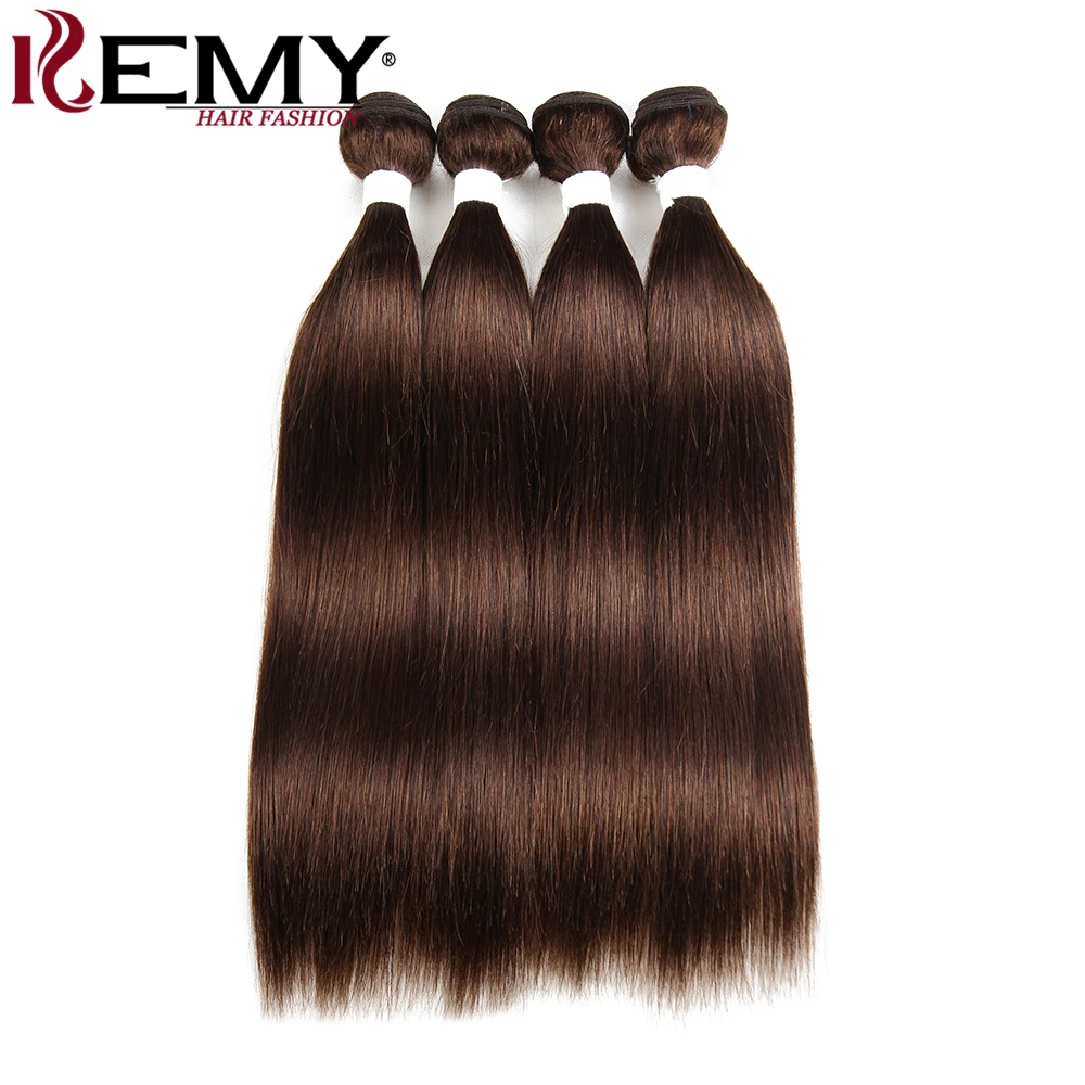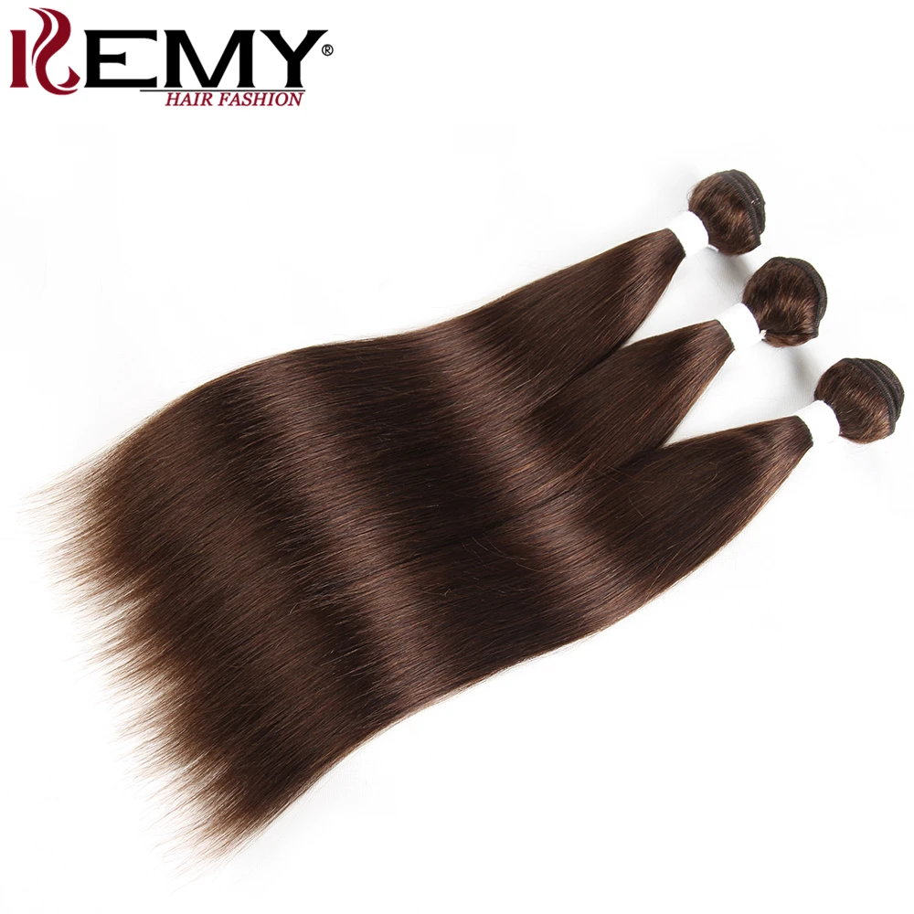 Hot Sale Medium Brown 4# Brazilian Straight Human Hair Weave Bundles KEMY HAIR Pre-Colored 100% Human Hair B