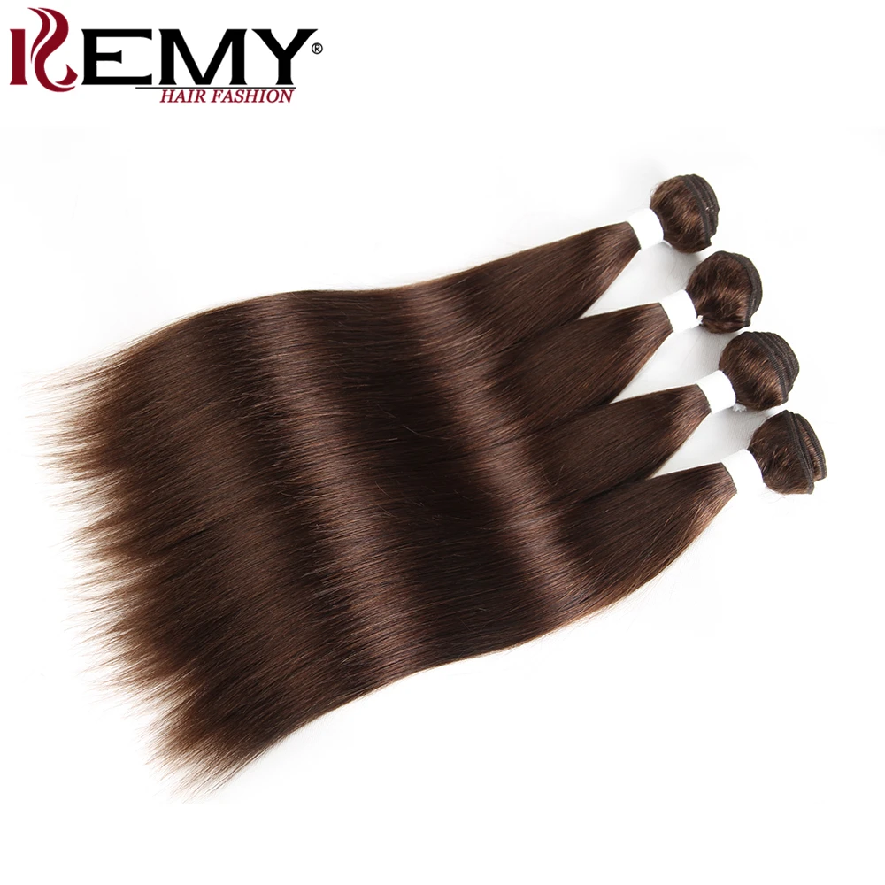 Medium Brown 4# Brazilian Straight Human Hair Weave Bundles KEMY HAIR Pre-Colored 100% Human Hair B