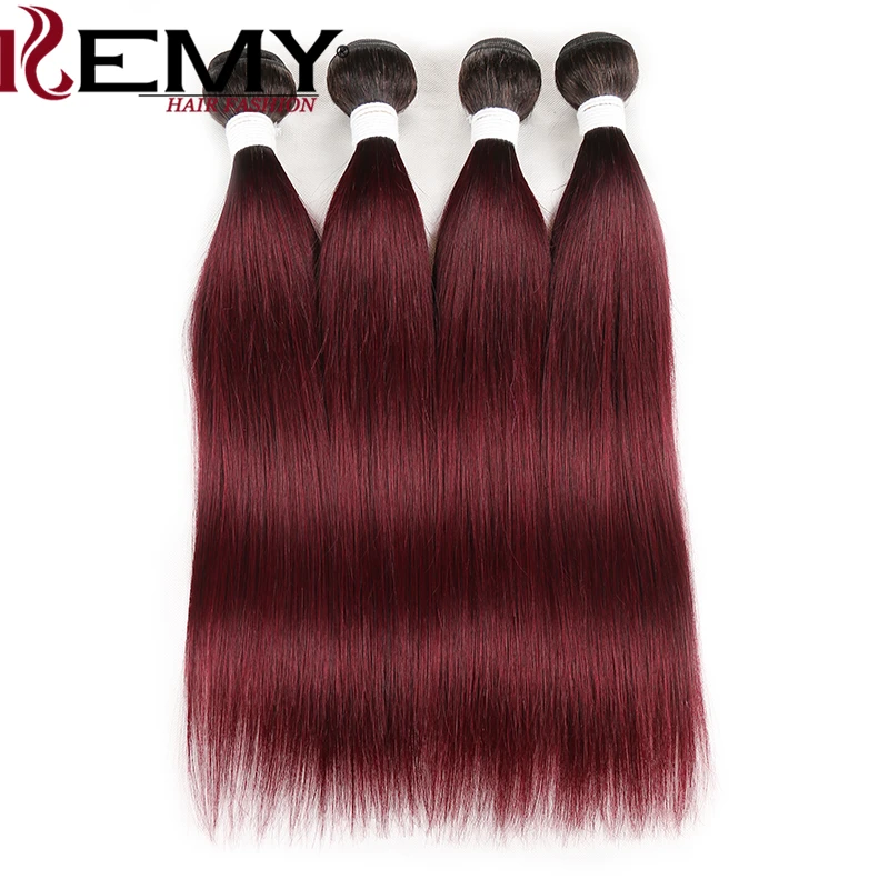T1B/99J Ombre Human Hair Bundles With Closure 4x4 KEMY HAIR Brazilian Straight Hair Weave Bundles Non-Remy Hair Extension